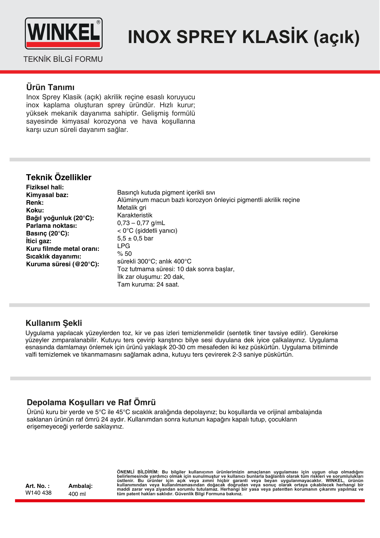 “W140438 Inox Sprey Klasik Açık 400ML” için yorum yapan ilk kişi siz olun